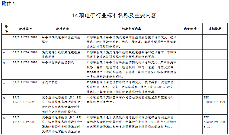 根據(jù)標(biāo)準(zhǔn)制修訂計(jì)劃,相關(guān)標(biāo)準(zhǔn)化技術(shù)組織已完成《半導(dǎo)體集成電路沖壓型引線(xiàn)框架》等14項(xiàng)行業(yè)標(biāo)準(zhǔn)和《光伏器件 第2部分:標(biāo)準(zhǔn)光伏器件的要求》等26項(xiàng)國(guó)家標(biāo)準(zhǔn)的制修訂工作。在以上標(biāo)準(zhǔn)批準(zhǔn)發(fā)布之前,為進(jìn)一步聽(tīng)取社會(huì)各界意見(jiàn),現(xiàn)予以公示,截止日期2020年10月23日。