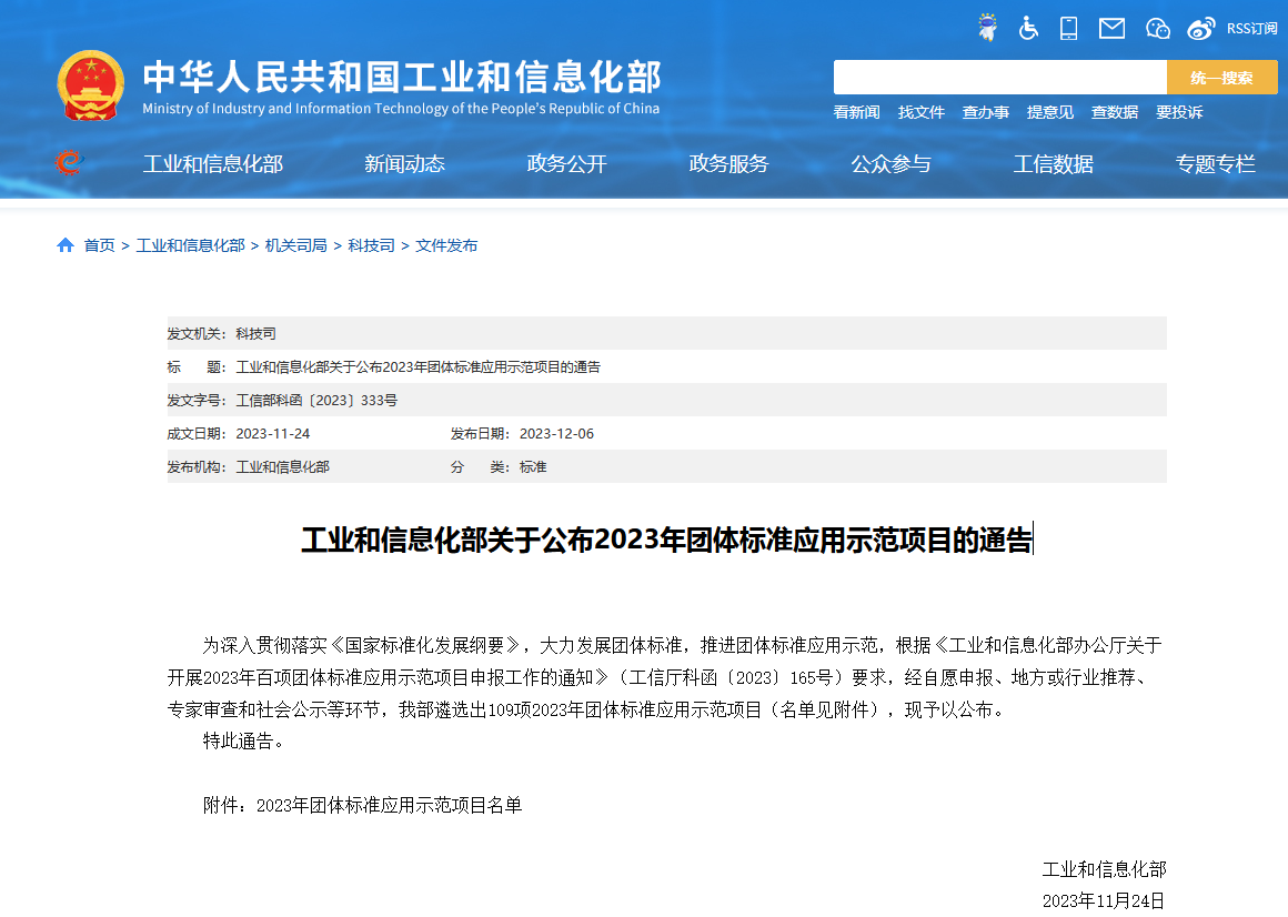 1. 協(xié)會兩項團體標準上榜工信部2022年團體標準應用示范項目名單