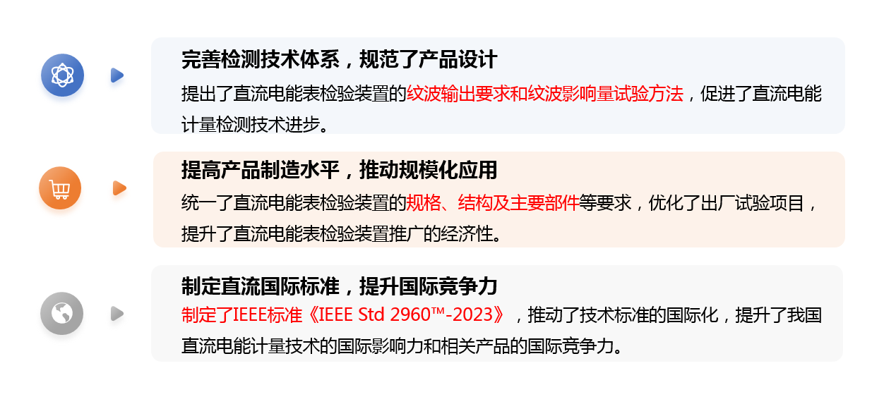 本團體標準廣泛應用于計量院、電網(wǎng)公司、計量檢測機構以及相關制造企業(yè),提升了直流電能計量器具及其檢驗裝置的設計、制造和規(guī)模化應用。