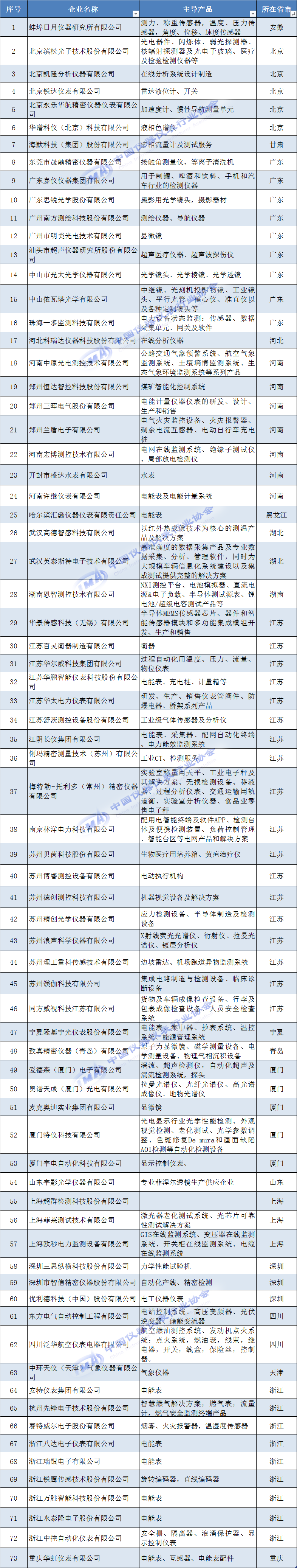 入選第六批專精特新“小巨人”企業公示名單中的儀器儀表行業企業: