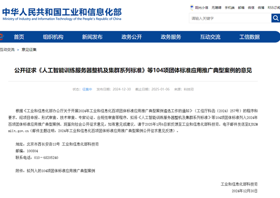 工信部12月30日發(fā)布消息,根據(jù)《工業(yè)和信息化部辦公廳關(guān)于開展2024年工業(yè)和信息化百項團體標(biāo)準(zhǔn)應(yīng)用推廣典型案例遴選工作的通知》(工信廳科函〔2024〕257號)的程序和要求,經(jīng)項目申報、形式審查、技術(shù)審查、專家論證、合規(guī)性審查等程序,擬將《人工智能訓(xùn)練服務(wù)器整機及集群系列標(biāo)準(zhǔn)》等104項團體標(biāo)準(zhǔn)列入2024年百項團體標(biāo)準(zhǔn)應(yīng)用推廣典型案例,現(xiàn)面向社會公開征求意見。