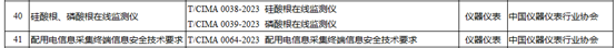 由中國儀器儀表行業(yè)協(xié)會發(fā)布的3項團體標(biāo)準(zhǔn)T/CIMA 0038-2023《硅酸根在線監(jiān)測儀》、T/CIMA 0039-2023《磷酸根在線監(jiān)測儀》和T/CIMA 0064-2023《配用電信息采集終端信息安全技術(shù)要求》被納入公示名單。