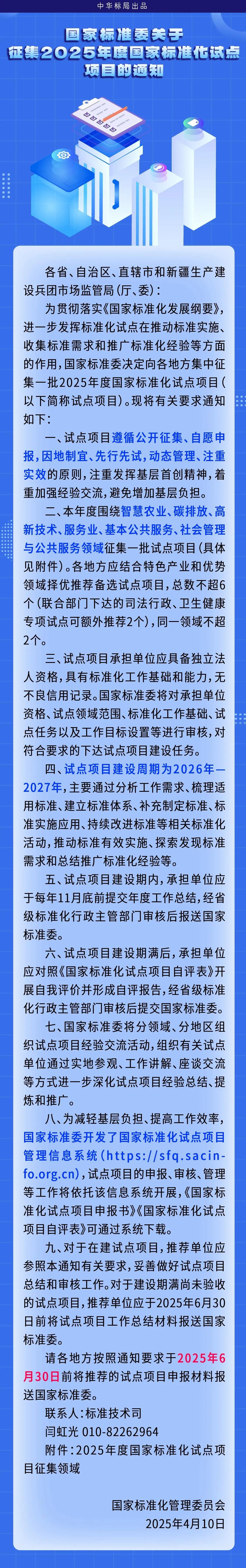國家標(biāo)準委關(guān)于征集2025年度國家標(biāo)準化試點項目的通知