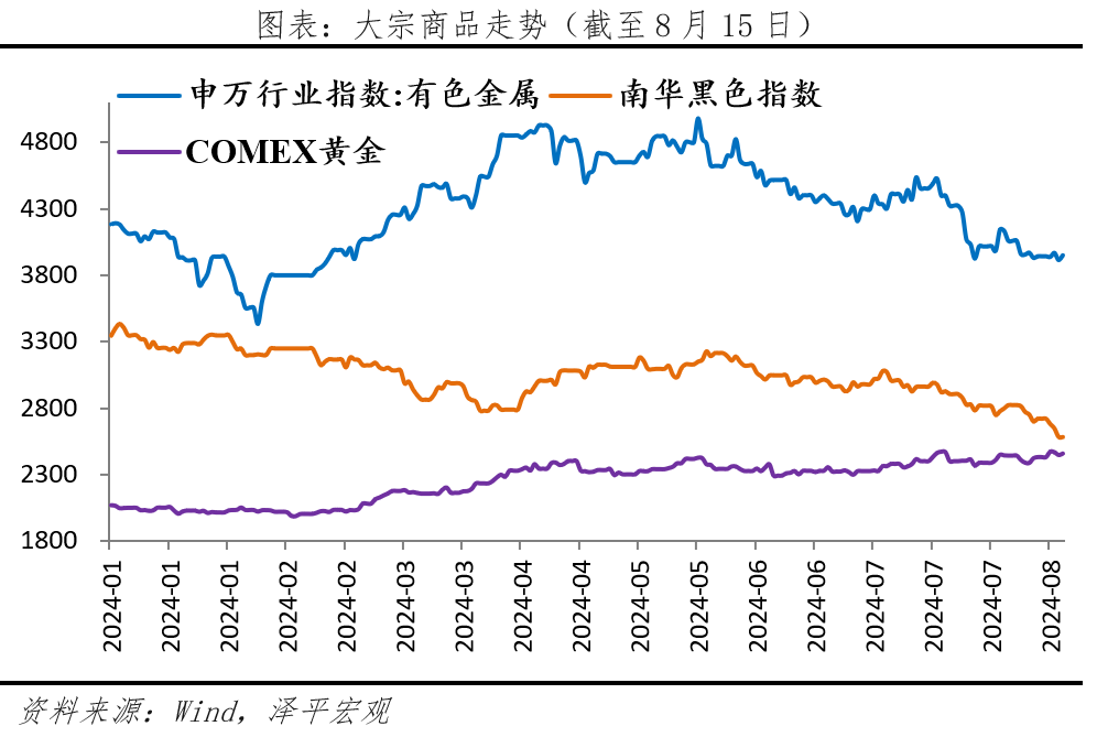 美國經(jīng)濟降溫是大勢所趨,但難言衰退或硬著陸,海外交易主線仍是降息交易。當(dāng)前市場基本定價9月美聯(lián)儲開啟降息,一是利好新興市場股市。美債利率走弱,一定程度引導(dǎo)資本外流,利好新興市場股市。二是黃金短期可能利好出盡,但長期配置基礎(chǔ)仍在。在美聯(lián)儲降息落地后,當(dāng)前黃金漲幅已充分定價美聯(lián)儲降息預(yù)期,但美國大選可能釋放美國債務(wù)進一步增長的信號,增加市場對美元信用的擔(dān)憂,因此黃金長期配置邏輯仍在。