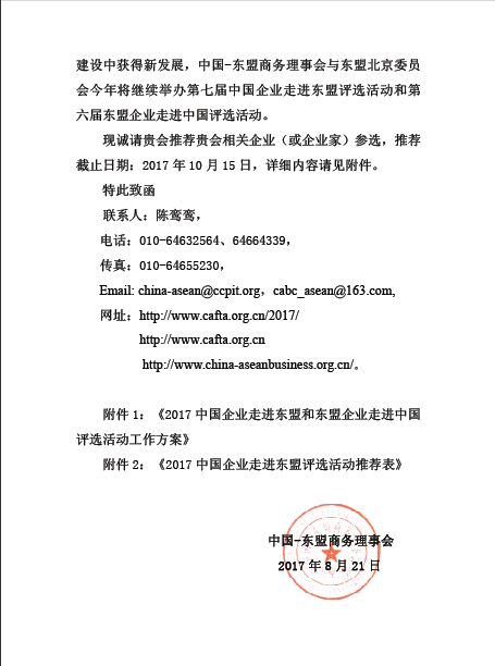 附件:2017年度中國企業走進東盟 評選活動推薦表