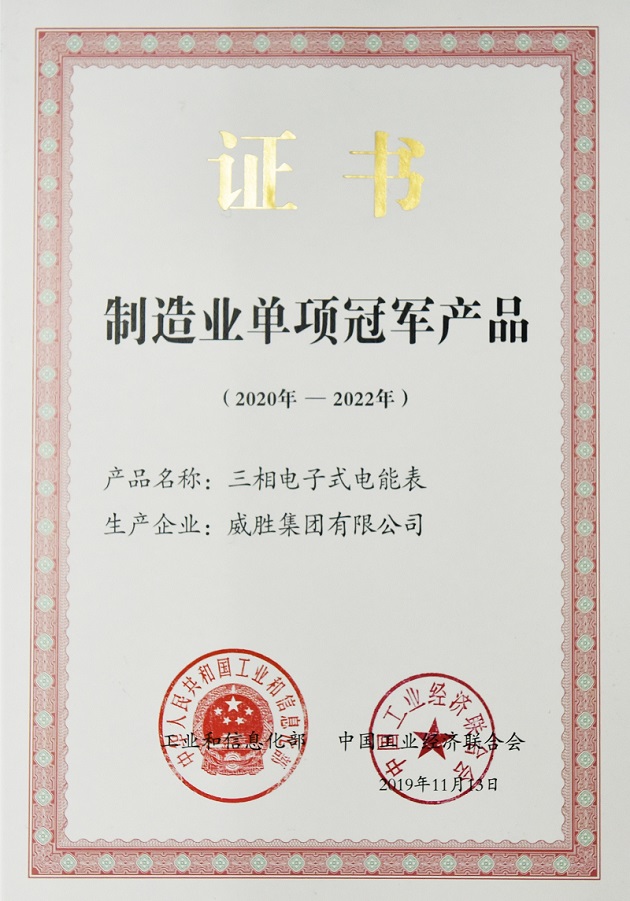 10月25日,國(guó)家工業(yè)和信息化部發(fā)布《擬公布的第四批及擬通過(guò)復(fù)核的第一批制造業(yè)單項(xiàng)冠軍名單公示》,威勝集團(tuán)三相電子式電能表成功入選第四批制造業(yè)單項(xiàng)冠軍產(chǎn)品。
