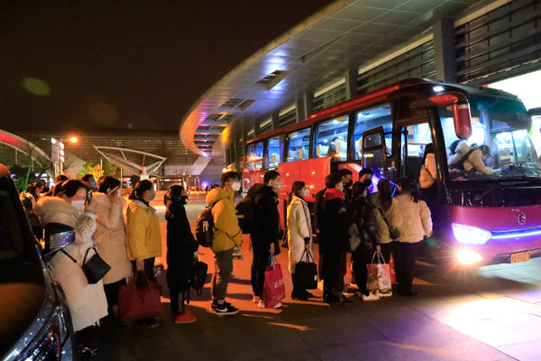 同時(shí),公司還組織了由8輛大巴車組成的車隊(duì),對(duì)這批特殊乘客進(jìn)行專車接送,在上車前對(duì)所有人員進(jìn)行體溫測(cè)量和消毒,并為員工安排了住宿點(diǎn),進(jìn)行必要的觀察休整,實(shí)現(xiàn)了由城點(diǎn)到站點(diǎn)、站點(diǎn)到廠點(diǎn)的三點(diǎn)無縫連接。
