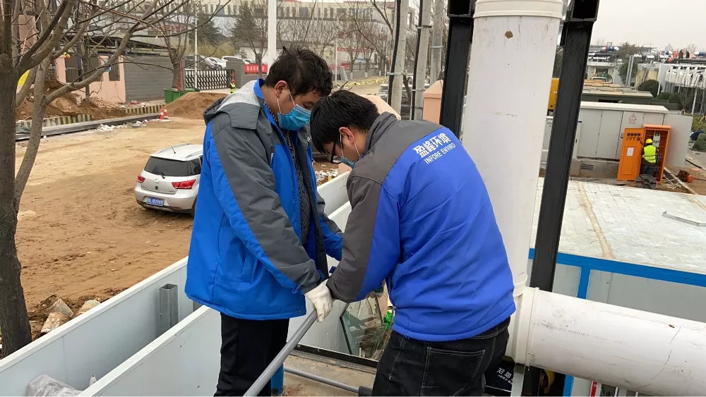 設備投入運行,兩套一體站安裝在醫(yī)院隔離區(qū)外,總占地不超過4㎡,系統(tǒng)采用全封閉管路,保證維護人員的安全,可隨時進行維護,確保監(jiān)測數據準確。