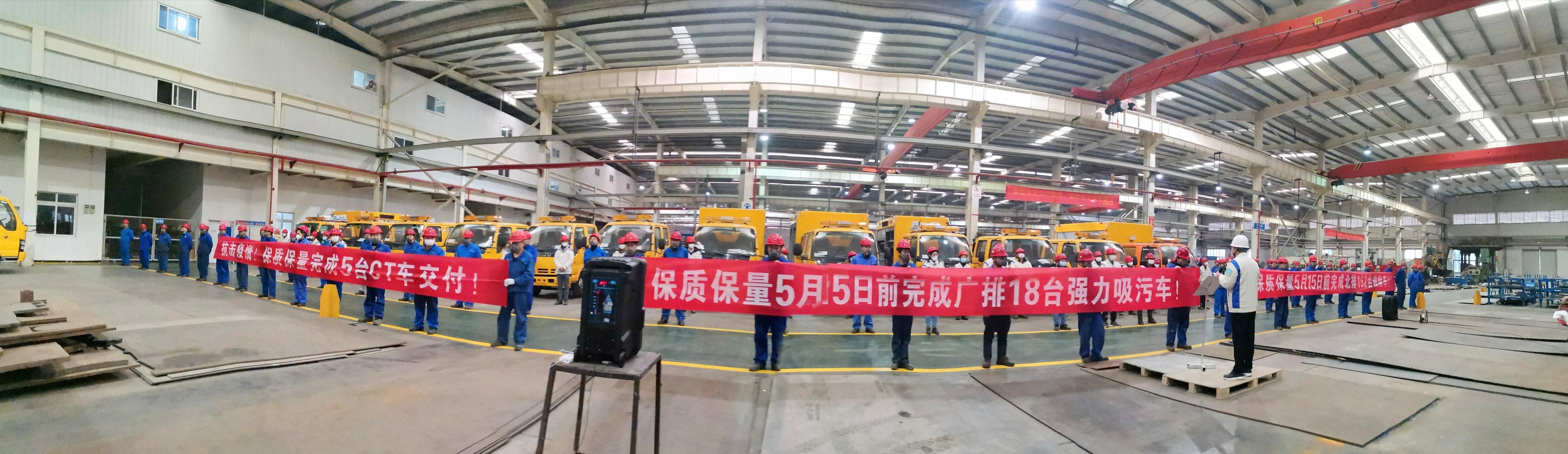 長(zhǎng)風(fēng)破浪會(huì)有時(shí),直掛云帆濟(jì)滄海。歷經(jīng)十年磨礪,終于在2020年初迎來(lái)歷史性的時(shí)刻,18臺(tái)強(qiáng)力吸污車(chē)、152臺(tái)救險(xiǎn)車(chē)、5臺(tái)CT車(chē)同期批量排產(chǎn)。為保質(zhì)、保量順利完成交付,在這個(gè)特殊的時(shí)期對(duì)全體家人進(jìn)行動(dòng)員。