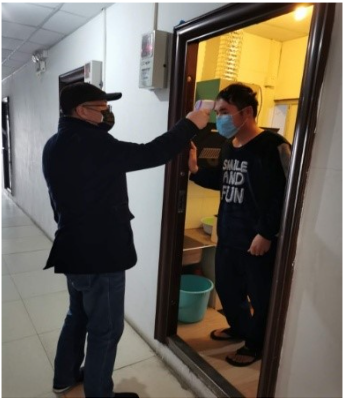 (寧波水表公司周雪峰部長(zhǎng)為隔離觀察員工測(cè)溫)