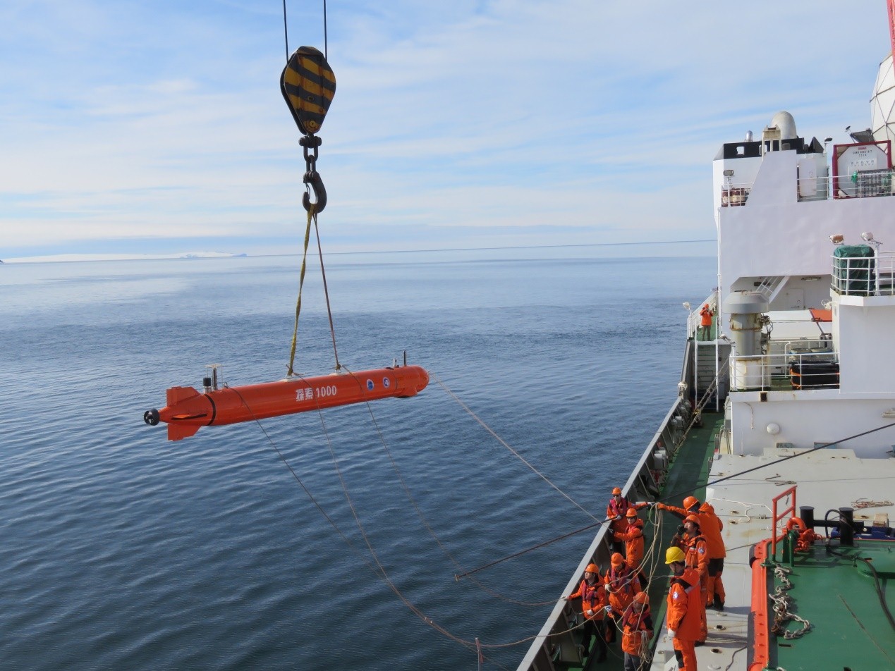 年初,“雪龍”號極地考察船抵達南大洋羅斯海新站附近海域,考察隊按航次計劃布放了“探索1000”。“探索1000”按照計劃完成自主執行多海洋要素走航觀測后被成功回收至“雪龍號”極地考察船。本次作業中,“探索1000”水下連續工作35小時,航程約68公里,完成了17個剖面的科學觀測,獲得了海流、溫度、鹽度、濁度、溶解氧及葉綠素等大量水文探測數據,也充分驗證了我國自主水下機器人在極端海洋環境下開展科學探測的實用性和可靠性,為極地冰蓋冰架下科學研究取得突破進展提供重要手段。