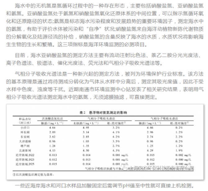 上海安杰環保科技氣相分子吸收光譜法的行業應用-海水
