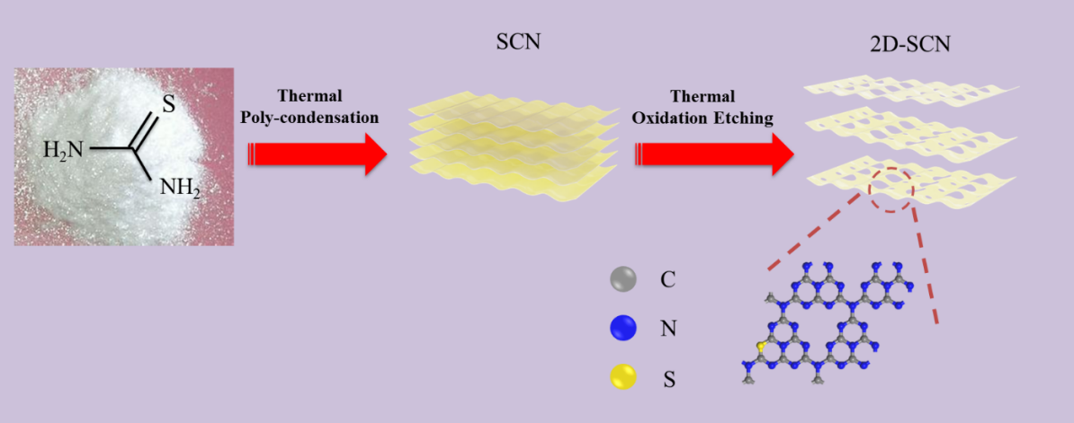 二維超薄結(jié)構(gòu)的硫摻雜光催化材料制備過程示意圖