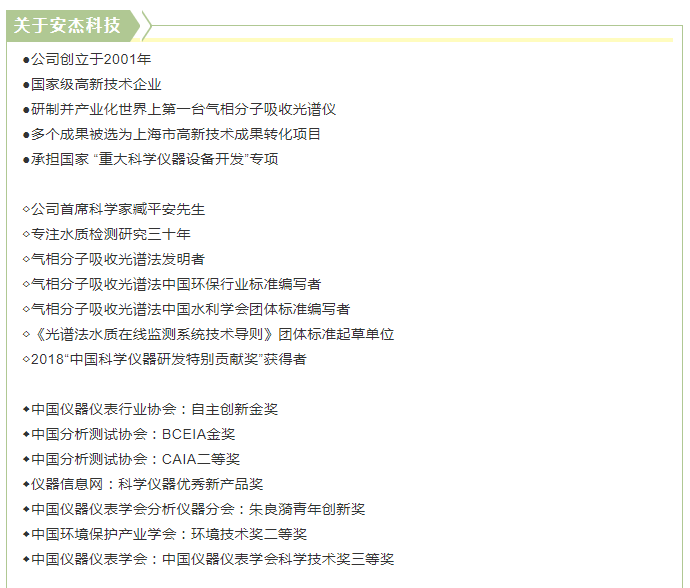 上海安杰環(huán)保科技股份有限公司是中國儀器儀表行業(yè)協(xié)會會員單位,成功研發(fā)出儀AJ-3700系列氣相分子吸收光譜儀。該儀器適用于地表水、地下水、海水、飲用水、生活污水及工業(yè)污水中氮化物、硫化物的測定。能夠快速準確地分析水體中亞硝酸鹽氮、氨氮、硝酸鹽氮、凱氏氮、總氮、硫化物等環(huán)境檢測指標,結果不受水體本底干擾,無汞污染隱患。為各級環(huán)監(jiān)部門靠前指揮,正確決策,防止重大事故發(fā)生,提供準確數(shù)據(jù),是各水質(zhì)分析人員的得力助手和環(huán)境保護的忠誠衛(wèi)士。