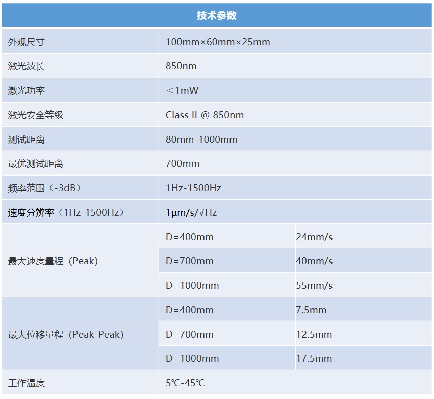 這款微型激光測振傳感器采用的是非接觸測量方法,可實現(xiàn)近距離(80mm-1000mm)高精度高分辨率(納米級)的動態(tài)測試,設備抗干擾能力強,適應高溫、潮濕等環(huán)境,具有高可靠性、低成本、高性價比等特點,可廣泛應用于工業(yè)自動化產線檢測、大型設備健康監(jiān)測等領域,同時也可用來檢測軸承、齒輪箱、電機和機器人等部件的運行狀態(tài)。