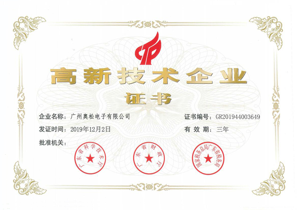 實力見證 | 廣州奧松電子榮獲國家“高新技術企業”