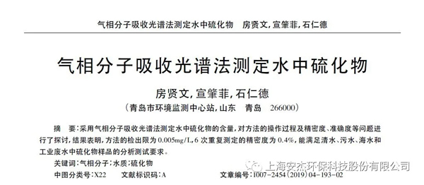 工業(yè)廢水中的氨氮,硫化物的含量非常高,且伴隨了色度,濁度等其他指標(biāo)的影響。在檢測(cè)過(guò)程中對(duì)實(shí)驗(yàn)室操作人員非常不友好。已經(jīng)有相關(guān)的文獻(xiàn)報(bào)道測(cè)量工業(yè)廢水中利用氣相分子吸收光譜法來(lái)測(cè)定氨氮以及硫化物。與分光光度法進(jìn)行對(duì)比, 氣相分子吸收光譜法具有簡(jiǎn)便快速、測(cè)量準(zhǔn)確等優(yōu)點(diǎn)。