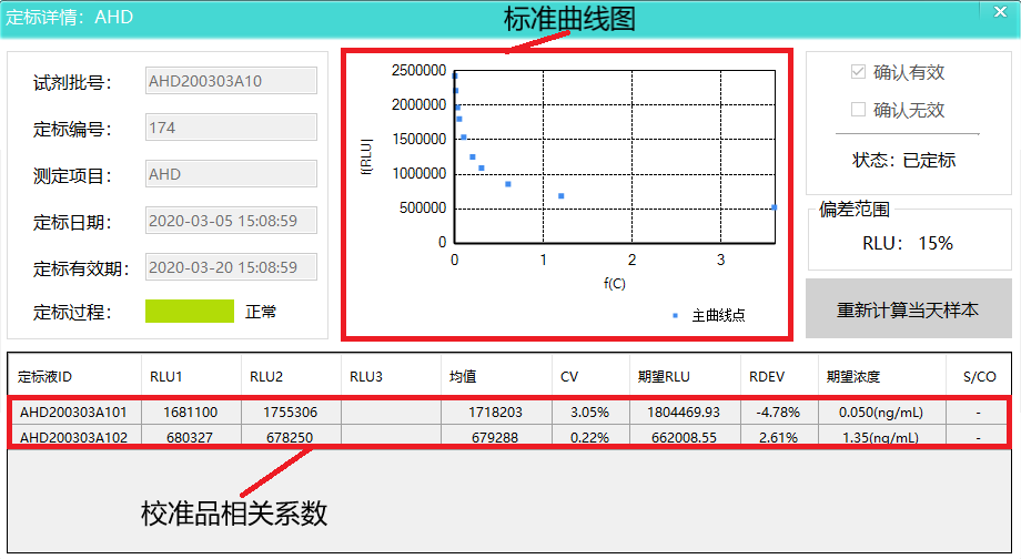 通過呋喃四項校準(zhǔn)品發(fā)光值進行算法擬合出當(dāng)天標(biāo)準(zhǔn)曲線, 校準(zhǔn)品各詳細參數(shù)均在下圖中,校準(zhǔn)品變異系數(shù)均小于5%。