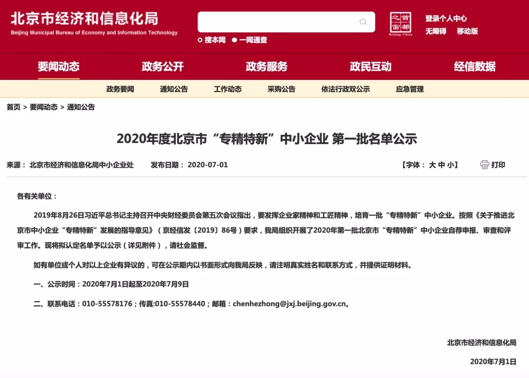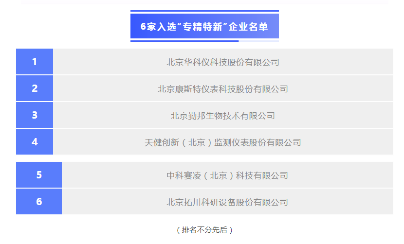 2020年度北京市“專精特新”企業第一批公示,6家