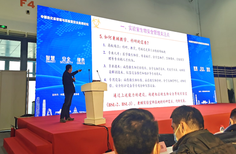 不只是化學實驗室,如果操作不當,安全管理不到位同樣也會使生物實驗室成為安全隱患。軍事科學院軍事醫學研究院生物安全研究所原主任李勁松通過題目為《實驗室生物安全管理與防護要點》的報告向與會者講解了生物實驗室的管理經驗,管理制度與法律法規,并根據多年的工作實踐經驗闡述了相關防護工作的要點。