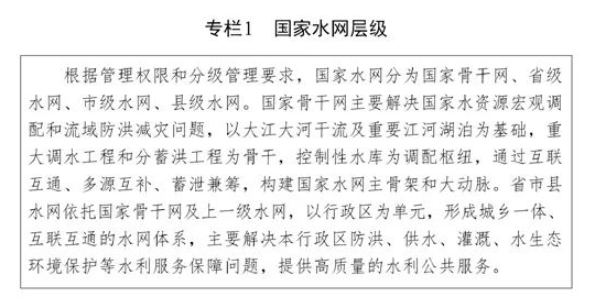 構建國家水網之“綱”。圍繞國家重大戰略,以大江大河干流及重要江河湖泊為基礎,以南水北調工程東、中、西三線為重點,科學推進一批重大引調排水工程規劃建設,推進大江大河干流堤防達標建設、重點河段河勢控制,針對重點河段適時開展提標建設,構建重要江河綠色生態廊道,加快構建國家水網主骨架和大動脈。