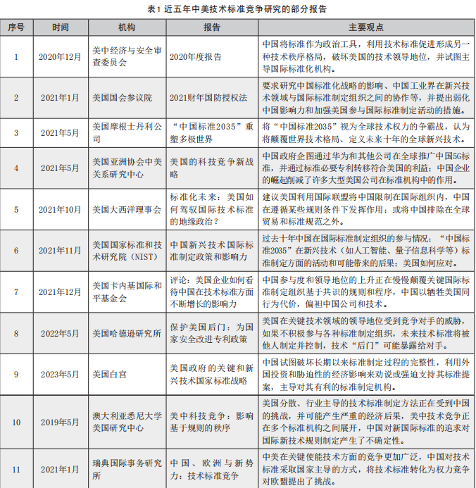 近年來,我國標準化水平和能力不斷提升,尤其《中華人民共和國標準化法》的修訂、《國家標準化發展綱要》及配套政策的實施,使得我國在國際標準制定方面的參與度和影響力與日俱增,引起了美國政策制定者和研究人員的高度關注和擔憂。2023年5月4日,白宮發布《美國政府的關鍵和新興技術國家標準戰略》稱,中國利用外國投資和經濟影響試圖破壞標準制定過程的完整性和公正性,為鞏固市場主導地位,中國往往通過代理公司來推動標準的規范性,而非技術優勢。