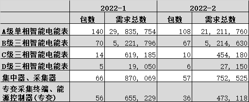 2022年國網電能表和用電信息采集項目兩次招標需求情況