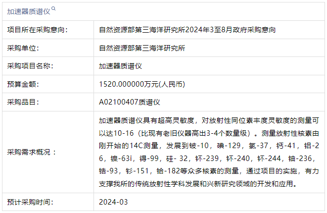 自然資源部第三海洋研究所2024年3至8月政府采購意向-加速器質(zhì)譜儀詳細情況