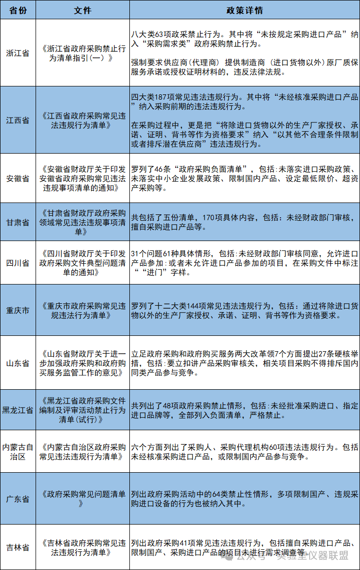 包括浙江、廣東、黑龍江、吉林等多省接連發(fā)布通知,著重強調(diào)應當采購本國產(chǎn)品,把政府采購中限制國產(chǎn)設備、違規(guī)采購進口等行為,納入負面清單嚴格禁止。
