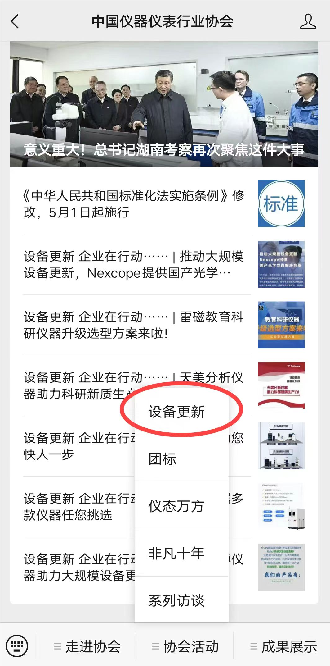 請關(guān)注中國儀器儀表行業(yè)協(xié)會公眾號,點擊主頁下方“協(xié)會活動”中“設(shè)備更新”專欄,即可參考部份已發(fā)布信息,請見下列圖示,讓我們一起“在行動”!