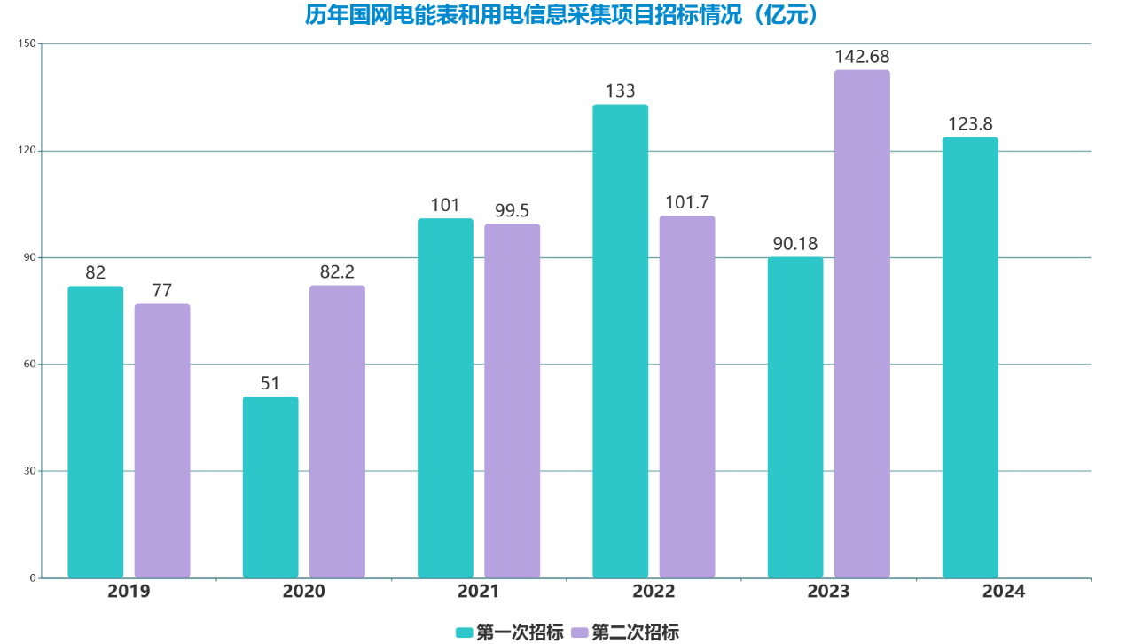 近日,國網(wǎng)2024年第一次電能表(含用電信息采集)招標(biāo)采購?fù)扑]的中標(biāo)候選人公示信息發(fā)布,本批次共7個(gè)分標(biāo),378個(gè)標(biāo)包,總計(jì)公示中標(biāo)金額為123.80億元,按2023年2批中標(biāo)價(jià)格測算,本批次整體價(jià)格環(huán)比下降6%左右;公示中標(biāo)總金額環(huán)比下降13.23%,同比增長37.28%。