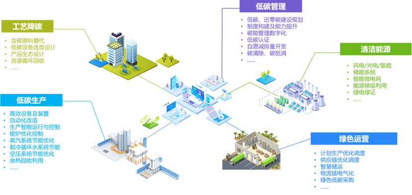 聚焦“節能降本增效、可續高質發展、突破綠色壁壘、提升品牌價值”的價值目標,中控技術提出“零碳”工廠解決方案,旨在通過先進的技術手段,實現工廠的能源高效利用、碳排放大幅減少,最終達到碳中和的目標,為工廠的綠色轉型提供了全方位的支持。