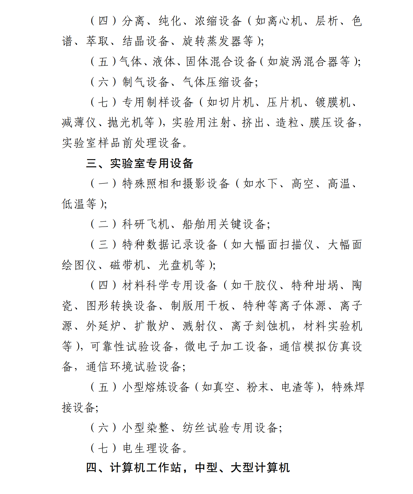 主要涉及四大門類:實驗環境方面、樣品制備設備和裝置、實驗室專用設備、計算機工作站,中型、大型計算機。