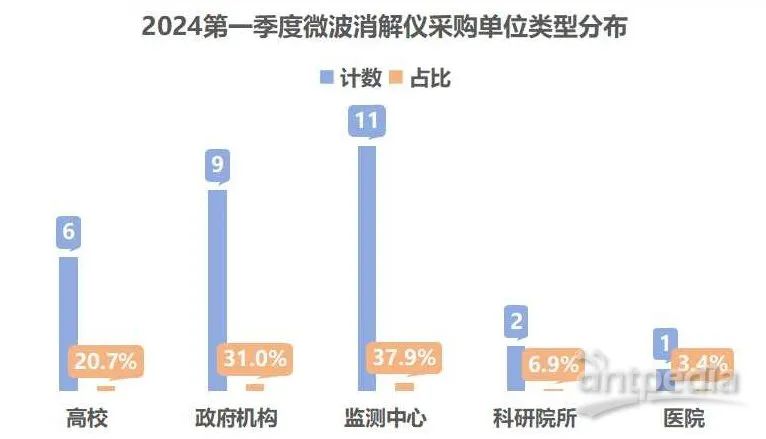 從采購(gòu)單位類型來(lái)看,微波消解儀的用戶類型涵蓋高校。政府機(jī)構(gòu)、監(jiān)測(cè)中心、科研院所和醫(yī)院等。具體來(lái)看監(jiān)測(cè)中心在該季度展現(xiàn)出最強(qiáng)的購(gòu)買力度,成為微波消解儀采購(gòu)的首要用戶群體。緊隨其后的是政府機(jī)構(gòu),它們?cè)诓少?gòu)微波消解儀方面也展現(xiàn)出了較高的活躍度。此外,高校作為科研和教學(xué)的重要場(chǎng)所,對(duì)微波消解儀的需求也不容忽視。