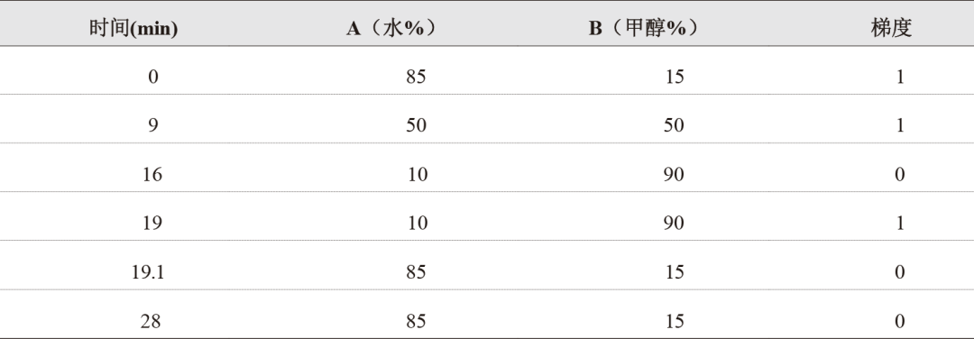 1    梯度洗脫表