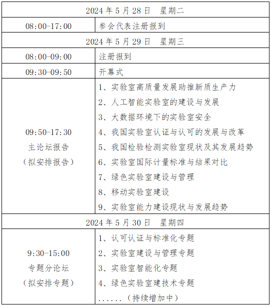 (一)主題報告:擬邀請國家市場監(jiān)督管理總局、海關總署、國家認證認可監(jiān)督管理委員會、中國合格評定國家認可委員會等政府主管部門負責人,兩院院士,行業(yè)知名專家,企業(yè)家就我國實驗室管理及檢測技術(shù)宏觀市場環(huán)境、發(fā)展趨勢、政策解讀等內(nèi)容作特約報告。