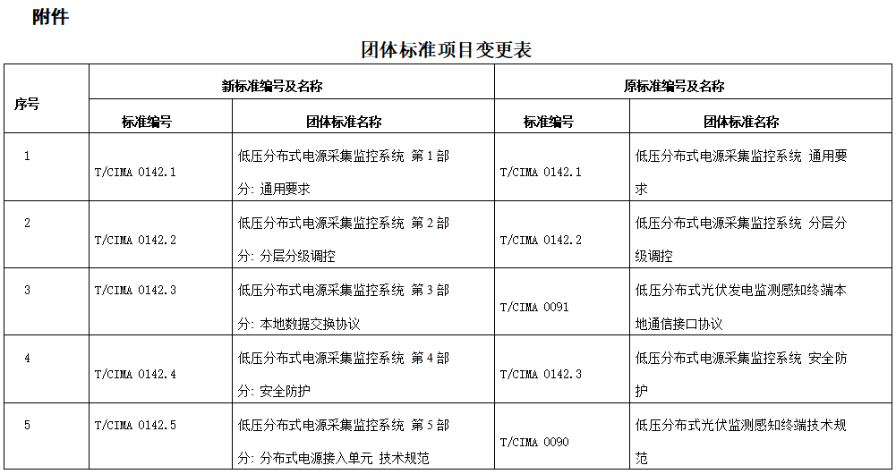 根據(jù)電工儀器儀表分會(huì)提交的《關(guān)于將系列團(tuán)體標(biāo)準(zhǔn)<低壓分布式電源采集監(jiān)控系統(tǒng)>重新編號(hào)、修改名稱的申請(qǐng)》,經(jīng)研究,該申請(qǐng)符合協(xié)會(huì)團(tuán)體標(biāo)準(zhǔn)管理辦法及細(xì)則,修改后有利于完整體現(xiàn)編制目的,有利于滿足標(biāo)準(zhǔn)使用者的不同需求,同意重新編號(hào)和修改名稱。
