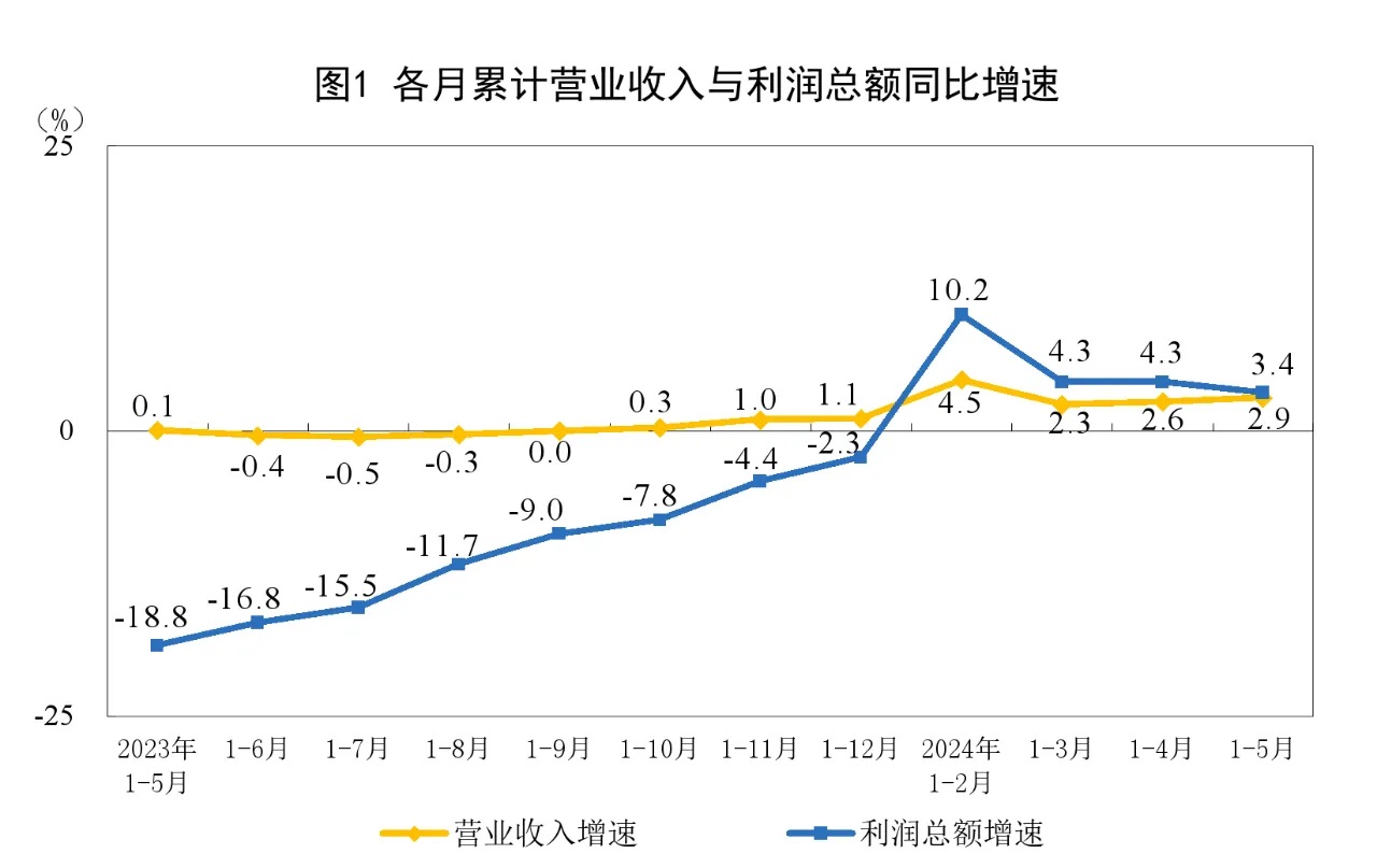 1—5月份,全國規(guī)模以上工業(yè)企業(yè)實現(xiàn)利潤總額27543.8億元,同比增長3.4%(按可比口徑計算)。