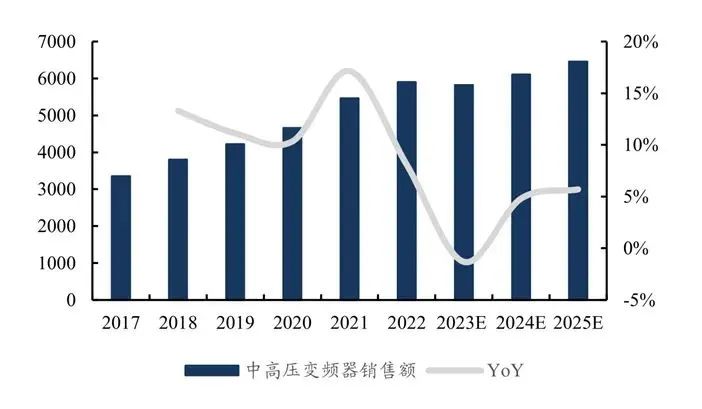 在中高壓變頻器市場中,2020~2022年,我國中高壓變頻器市場規模同比增長率分別達到了10%17%8%,年復合增長率達到了13%,顯示出強勁的增長動力。