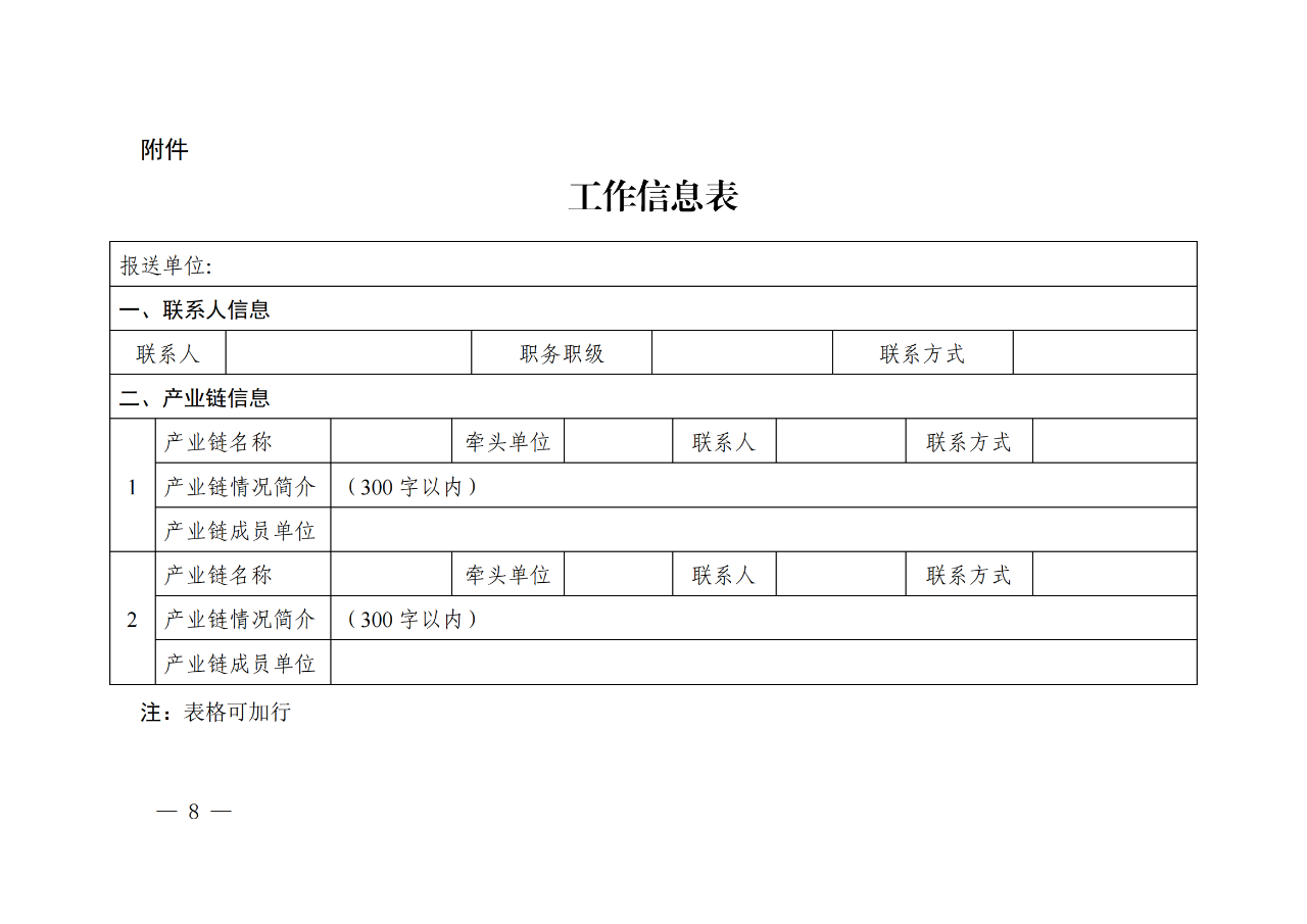 (十一)加強組織實施。各省級知識產權局會同相關部門,依托專利轉化運用專項行動推進機制,面向重點產業建立產業鏈企業聯系工作機制,因地制宜開展產業知識產權強鏈增效工作;鼓勵中央企業選取細分領域,協同產業鏈上下游企業以及相關高校、科研機構,共同開展產業知識產權強鏈增效工作。各省級知識產權局以及有關中央企業于8月15日前將工作信息表(見附件)報送國家知識產權局,以半年為周期報送工作進展情況,有關重大情況要及時報告相關主管部門。