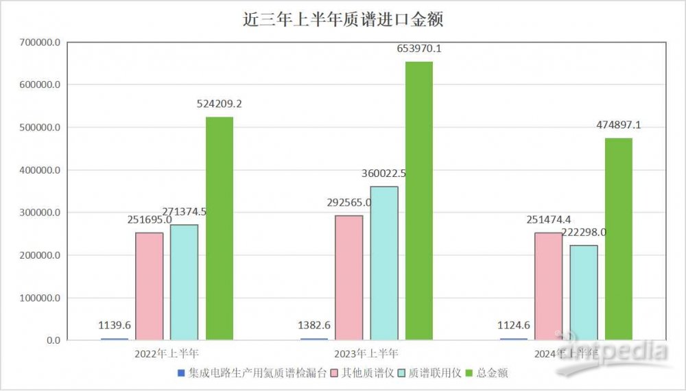 2024年上半年,質譜儀的進出口數據揭示了市場的動態變化和發展趨勢。進口方面,盡管2023年質譜儀的總進口數量和金額達到高峰,2024年上半年卻出現了顯著的下降,特別是質譜聯用儀和集成電路生產用氦質譜檢漏臺的需求減少較為顯著。同時,我們也看到了國產質譜儀的國際競爭力逐步提升。