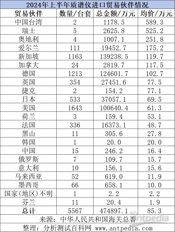 質譜儀作為一種高精度的分析儀器,在食品安全、環境監測、藥物分析和生命科學等領域具有重要應用。近年來,全球質譜儀市場規模持續增長,中國市場也呈現出擴大趨勢。為進一步了解質譜儀進出口情況,分析測試百科網對上半年質譜儀進出口數據進行整理。
