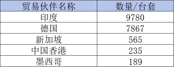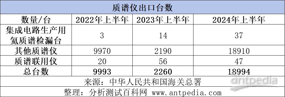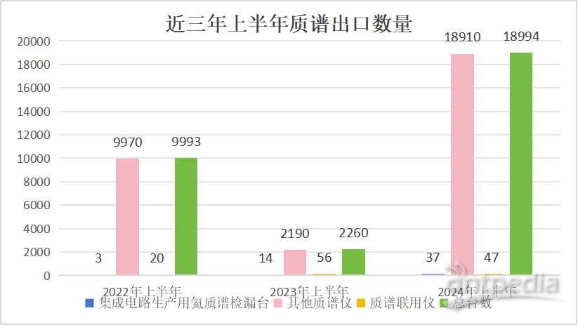 2024年上半年質譜出口18994臺套,數量前五的有印度9780臺套,德國7867臺套,新加坡565臺套,遠銷中國香港235臺套,墨西哥189臺套。