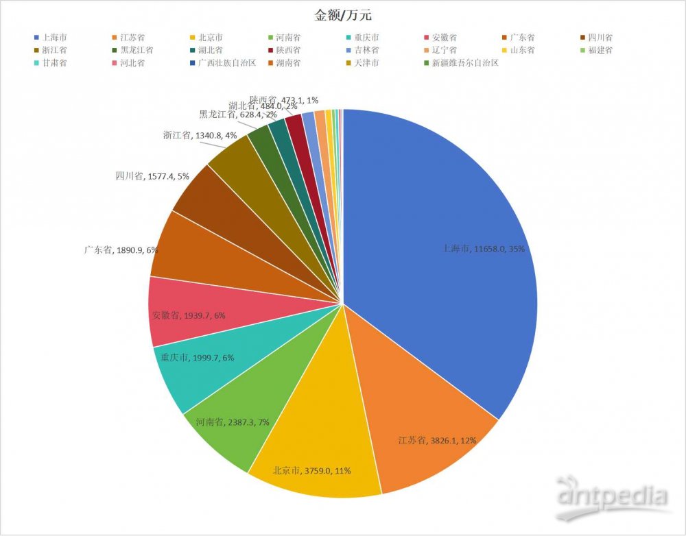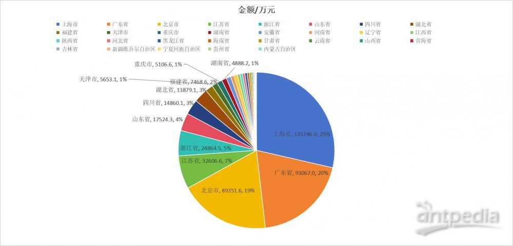 從2024年上半年質譜出口金額來看,國內TOP5的出口地區為上海市1.2億元,江蘇省3826.1萬元,北京市3759.0萬元,河南省2387.3萬元,重慶市1999.7萬元。