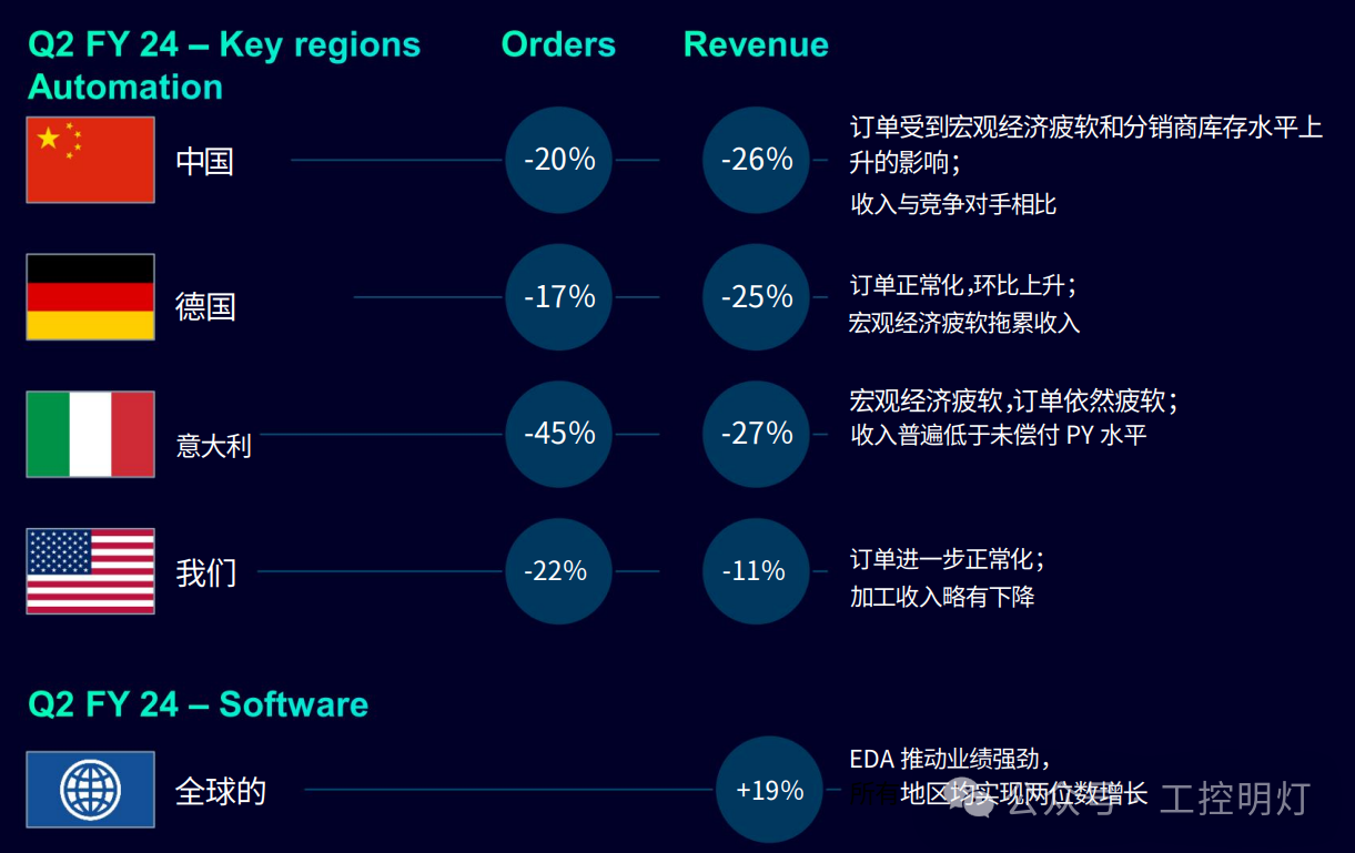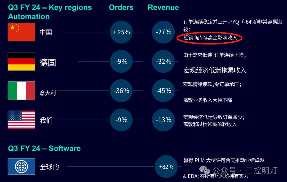 與之前的假設相反,Digital Industries 自動化業務的客h去庫存化可能會持續到今年下半年,尤其是在中國。對于 2024 財年下半年,Digital Industries 假設其⾃動化業務的需求將⽐本財 年上半年有所回升,并預計其軟件業務將獲得⼤量合同。
