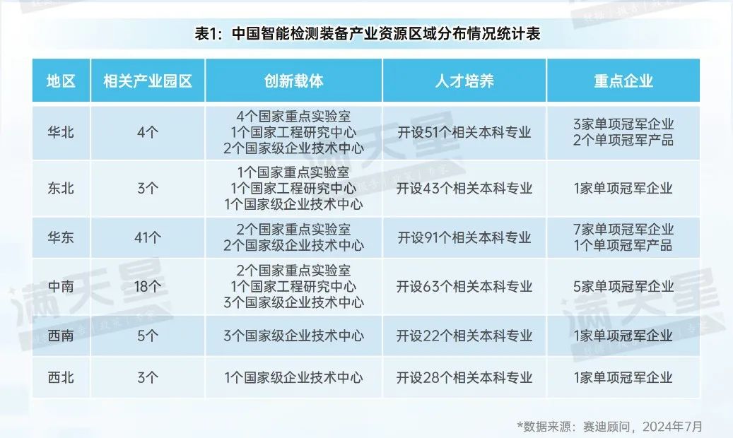 表1:中國(guó)智能檢測(cè)裝備產(chǎn)業(yè)資源區(qū)域分布情況統(tǒng)計(jì)表
