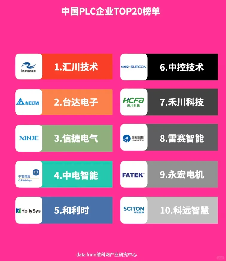 匯川、中控、和利時:中國PLC企業TOP20榜單