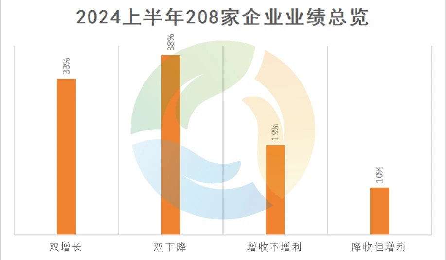 據(jù)統(tǒng)計(jì),在已經(jīng)發(fā)布2024年半年度報(bào)告的208家上市環(huán)保企業(yè)中,有80家企業(yè)呈現(xiàn)出“雙降”的情況,也就是營業(yè)總收入和凈利潤相較同期都有所下降。