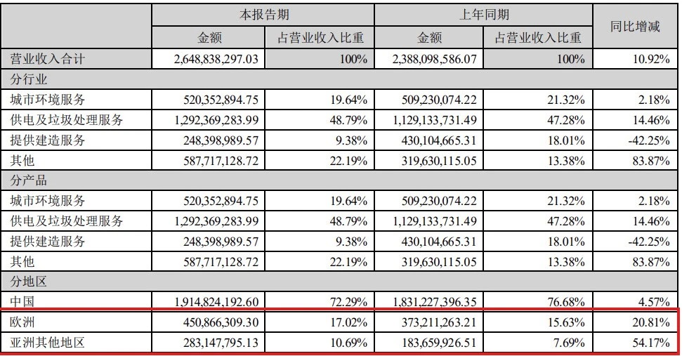 率先布局海外市場的中國環(huán)保企業(yè)已獲得的成果,也驗(yàn)證了海外市場是當(dāng)前非常廣闊的增量空間。根據(jù)中國天楹的半年度報(bào)告,海外業(yè)務(wù)占營業(yè)收入比重增幅已遠(yuǎn)超國內(nèi)業(yè)務(wù),增長潛力值得期待。
