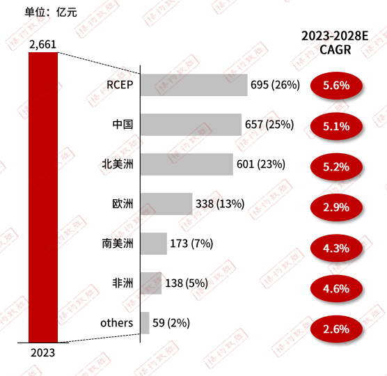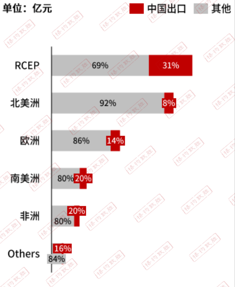 ✦•RCEP國家的變壓器市場份額最高,占全球的26%,RCEP國家中尤其是東南亞國家經(jīng)濟發(fā)展速度較快,電力基建需求高,當(dāng)?shù)貙ψ儔浩鳟a(chǎn)品的需求較高;